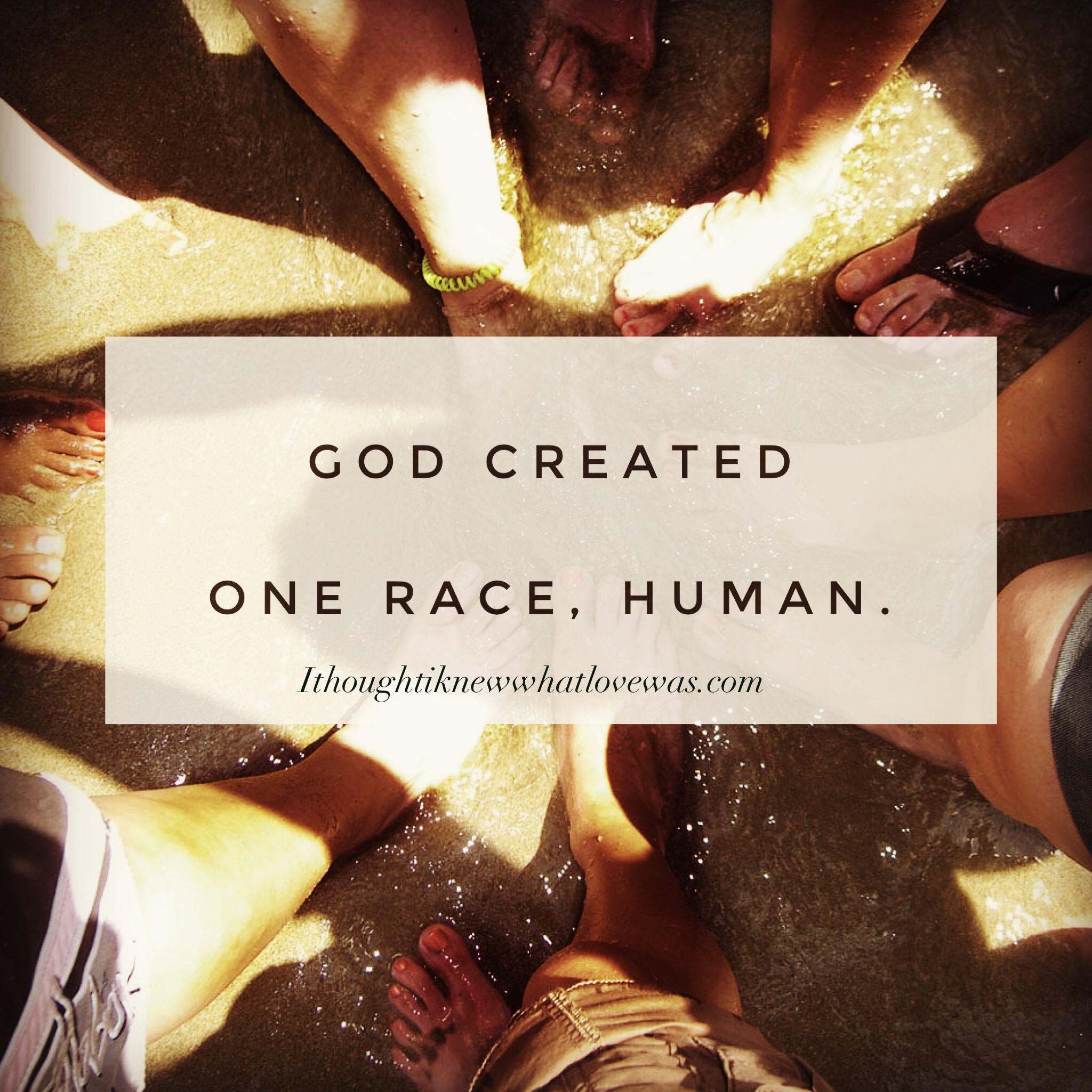 I prefer we are all one race of people, human. Men and women have equal value to God. The foreigner and the native born are uniquely and passionately loved.