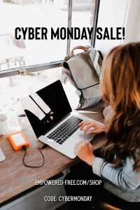 • Cyber Monday Sale: November 26, 2018 (all day). 30% of everything in the Empowered & Free Store!