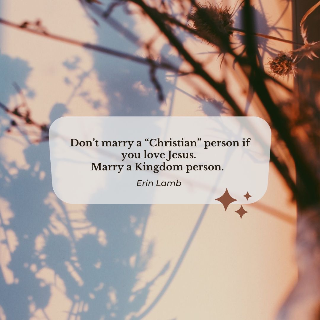 I will be honest that I have met more “Christians” than Kingdom people. It saddens me because Jesus is grossly misrepresented by the masses. My encouragement for those who want to marry is “Seek first the Kingdom of God and all His righteousness.” Instead of, “God gimmie!!” Say, “God prepare me. Help me to be a Kingdom person. Help me to love you most and yield to your purposes. God make me a blessing so I can be a blessing. Give me discernment to know what’s just good and what’s God (you). Heal my brokenness. Fix the broken parts of me. Grow me up in you. Prune away non fruit bearing parts of me.”
